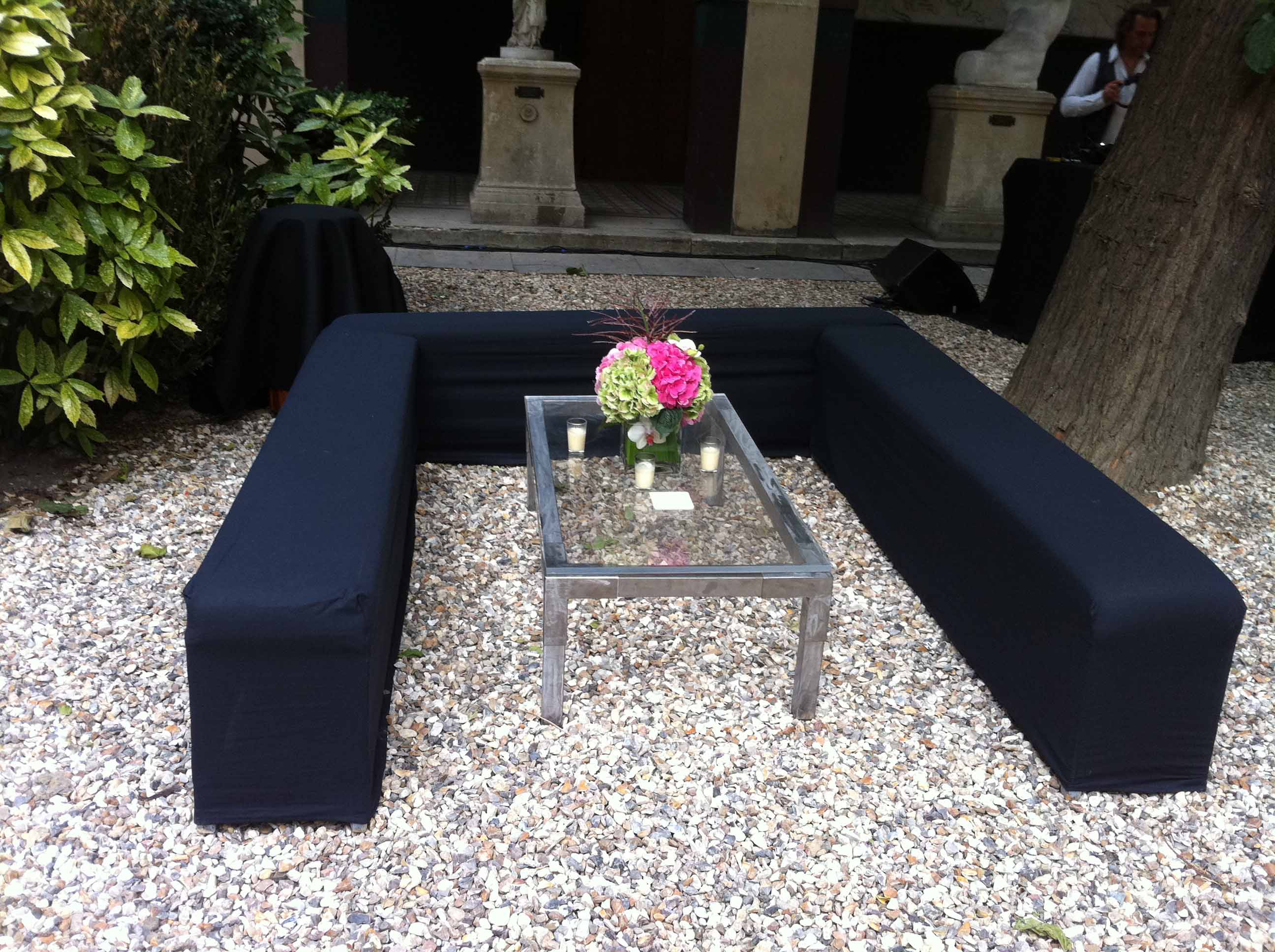 Les banquettes coutures sont notre signature. Elles sont parfaitement adaptées pour créer une ambiance lounge confortable pour accueillir vos invités. Selon vos besoins, nous les habillons de la couleur de votre choix (blanche, noir, rouge, fuschia…). Elles offrent un champs de possibilités infinis.